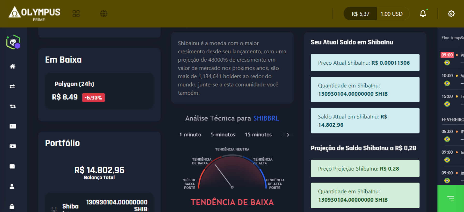 | 16 | Shiba Inu shib | R$ 0,00 | -4.09% | R$ 1.762.729.041,00 |